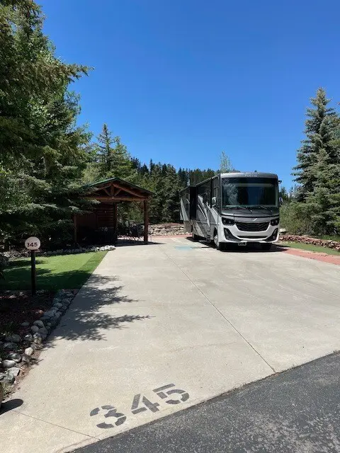 Tiger Run Lot 345 – Blue River Motorcoach Site. Best priced lot in Tiger Run!!! Perfectly placed at the quiet end of the Blue River section, this gem offers privacy with no neighboring site on one side and direct access to nature's wonders. Imagine stepping out of your Class A rig onto lush artificial grass, your very own putting green awaiting your morning coffee in hand. A fully equipped Coach shed and a custom log picnic shelter with heaters make outdoor living a year-round delight. And yes, there’s plenty of room for your big rig and additional vehicles too. The views? Simply unbeatable. Your new backyard boasts the tranquil Blue River and the breathtaking Ten Mile Range. And with full hook-ups, including 50 and 30-amp service plus WiFi, you’re all set for both short stays and long hauls. Whether you're looking for a personal escape or a savvy rental investment, Site 345 is your key to a premium RV lifestyle. Don’t wait. Grab this slice of Colorado luxury today and start making memories tomorrow.