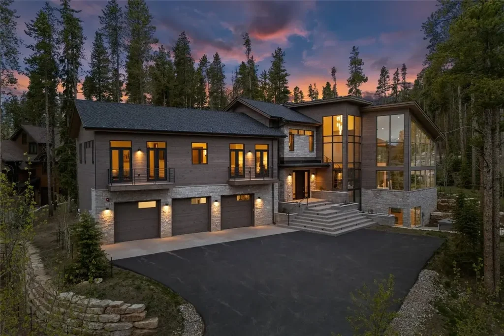 A stunning mountain modern family retreat situated on Peak 8 in Breckenridge’s Boulder Ridge III Subdivision. Elevate Architecture and Alpha Construction have partnered to create an unforgettable residence that highlights the spectacular views of Breckenridge Ski Area and North Valley while only being steps away from the slopes. There are two separate living areas providing plenty of room for entertaining with 4 fireplaces adding warmth throughout the home. The large great room features a chef’s kitchen with top-of-the-line appliances, a butler’s pantry, separate breakfast nook, massive vaulted ceilings, custom fireplace, designer lighting as well as glass pocket doors creating seamless indoor/outdoor living. The large covered outdoor living space off the great room offers a gas firepit, large dining and living spaces perfect for hosting or personal enjoyment. Just off the covered terrace you will find your hot tub perfect for stargazing late at night. The gorgeous architectural staircase in the home will take you upstairs to the primary suite. This suite has a custom fireplace, private balcony and 5-piece bathroom outfitted with soaking tub and a steam shower for ultimate relaxation. Just off the bedroom you will find your custom home office. Upstairs you will also find a large laundry room and three more bedrooms with en-suite bathrooms ready to accommodate the whole family and guests. Lower level living is luxurious with a full custom wet bar with a wine cellar, custom fireplace as well as room for a game of billiards. The bunk room, located just off this space is ready to accommodate all your guests or become the ultimate kid compound complete with private bath. Being just a short drive down the hill to historic main street and only steps from the ski area, this custom-crafted modern home is one of the finest homes in Breckenridge. With immaculate design and attention to detail this is the ultimate home for your mountain lifestyle.
