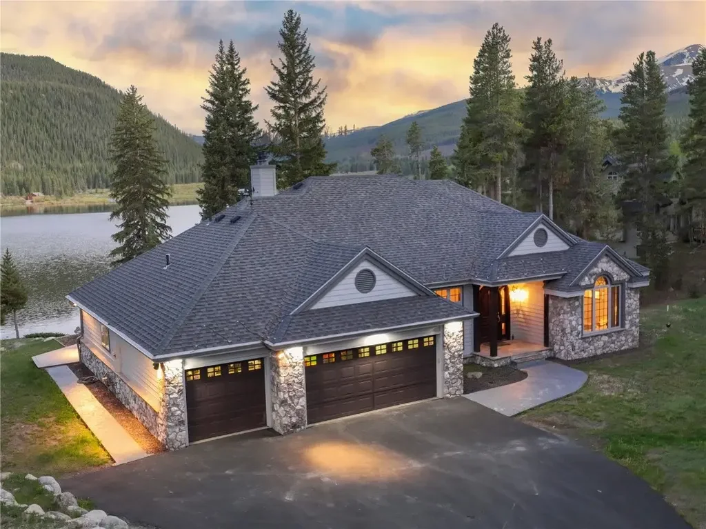 Rare lakefront location – unique in Summit County. Nearly ¾’s of an acre, this parcel offers direct access to Goose Pasture Tarn and spectacular views south to Hoosier Pass and surrounding peaks. Sit in your private hot tub in a snowstorm or watch the stars. Grab your canoe or stand-up paddle off the deck and walk to the water to enjoy the serenity of a pristine mountain lake. If fly fishing is more your style, cast to rising trout. This is the dream location for those wishing to enjoy everything Summit County has to offer. Less than 2 miles to downtown Breckenridge and about a 6-minute drive to the in-town parking garage. You are 2 miles to hiking on Spruce Creek and less than 5 miles to the Quandary Peak trailhead, a 14,000-foot peak. Access to Goose Pasture Tarn is limited to property owners in the Town of Blue River, so the Tarn is never crowded. The home was impeccably built with great care. It is situated to take full advantage of all the views, while perched on the parcel to limit any encroachment on your views from neighbors. A well-designed kitchen with lake views, Great Room with staggering views, primary bedroom, formal dining area, sitting area and second bedroom provide for main floor living. The lower level boasts a workshop/storage area, two offices, second gathering area, with two bedrooms and bathroom. Multiple decks and hot tub offer plenty of room for all the generations to enjoy the outside. Three car garage is perfect for all of your vehicles and mountain gear. Short term rentals are currently allowed with a license from the Town of Blue River. Always wanted to live on a lake? This is the place!