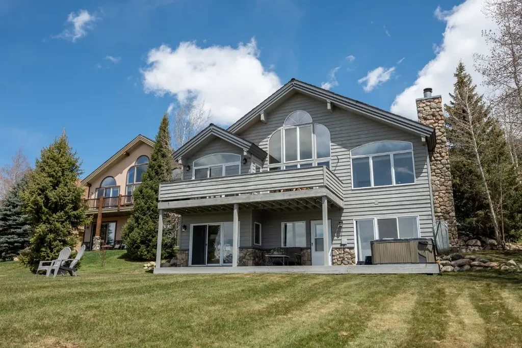 It’s summer and the views are breathtaking! This single family home overlooks Lake Dillon and is surrounded by mountains in the coveted Corinthian Hills community. Situated in a short term rental district with the Town of Dillon, investors and homeowners alike can benefit from the opportunity to rent or supplement by renting while enjoying this home. There is a shared driveway (hence 114B) to this 3-bedroom, 3-bathroom, 1-car garage property situated on almost a quarter acre. The home is designed to enjoy the unobstructed views 24/7 from and perfect for relaxing or entertaining. The kitchen features a grand center island that feels like the gathering space of the home. It has updated appliances to include a newer Bosch dishwasher, slide in range, a second oven, microwave, large refrigerator, and washer/dryer. Wood floors run throughout the upper level along with soaring vaulted ceilings where windows allow light to stream into the great room. Day dream from the built-in reading bench overlooking the lake and mountains or fix yourself a beverage from the wet bar in the living room. Downstairs is a walkout basement with views from the primary ensuite and guest room. The larger guest room is currently furnished as a bunk room with a seating area. Walk out to the back yard of this home from the lower level mud room, again with a wet bar for entertaining. Outside is a covered deck and hot tub. The expansive grassy yard is perfect for games and outdoor enjoyment. The community has lower HOA fees and features a community indoor pool, outdoor hot tub, clubhouse and community trash center. The best part is location! Close to multiple ski resorts and all things FUN in Summit County. Walk or bike to the Dillon Marina and Amphitheater, the Tiki Bar, Farmers Market non Fridays, plus shopping and dining. Less than a two hour drive to Denver International Airport to reach and enjoy your new mountain home! Rental history available for review, ask broker for details.