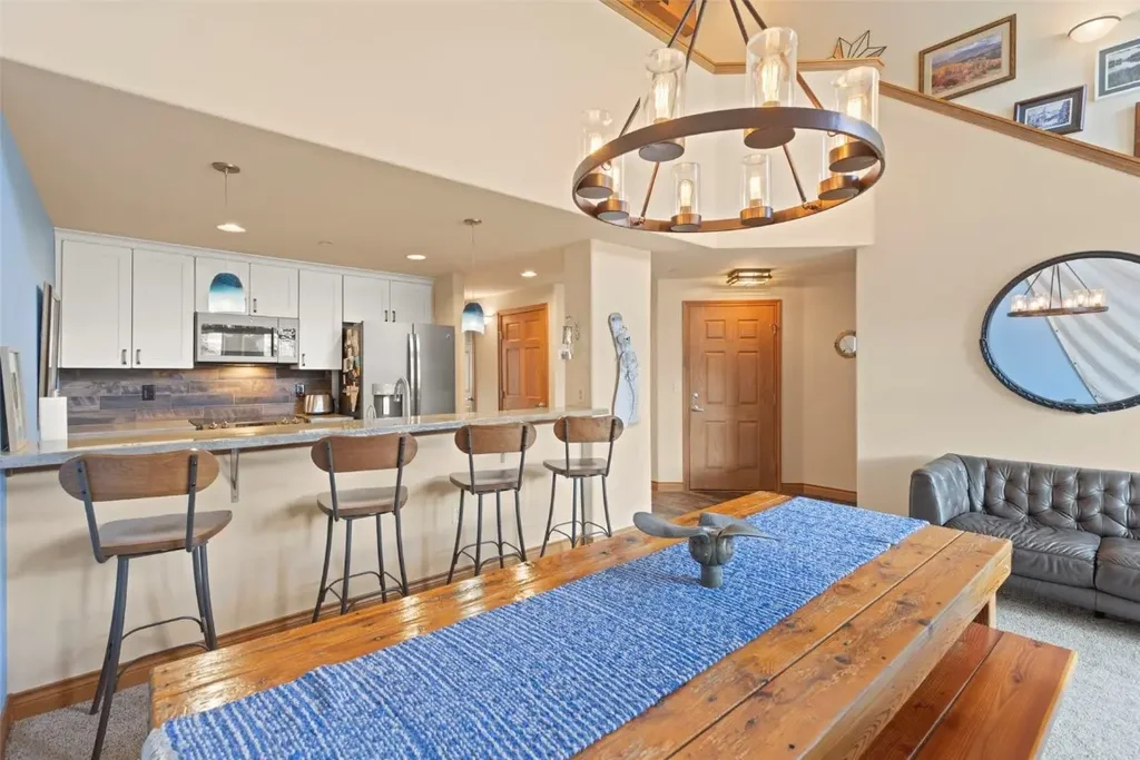 This charming home offers the perfect blend of comfort, convenience, and style. The updated kitchen and bathrooms provide modern amenities, while the well-maintained interior ensures a move-in ready experience. With one of the best locations in the Drake Landing complex, afternoon sun and views of Buffalo, Wichita, and Little Chief from the deck are sure to delight. The additional loft space adds flexibility, ideal for a home office, guest room, or recreational area. Enjoy the benefits of a central location with nearby amenities and excellent transport links, making this an ideal home for anyone looking to enjoy all that Summit County has to offer. With a recreation path right outside your door and easy access to Lake Dillon, the marina, and Frisco Main Street, this home perfectly situates you to enjoy both outdoor adventures and the vibrant local community.