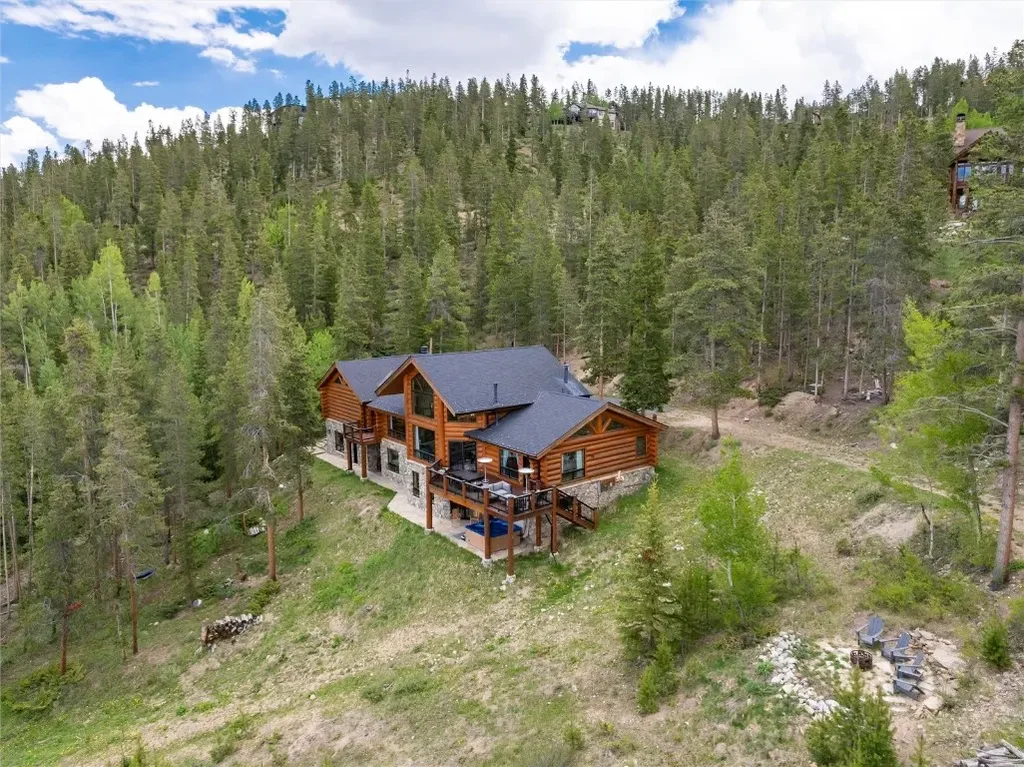 Quintessential 4 bedroom 6 bathroom Log Home on 4.48 private acres-is the ultimate mountain retreat! Perfectly appointed fully-furnished home with private-paved entrance. Upon entry experience the breath-taking views of the 10 Mile Range and Buffalo Mountain coupled with a spectacular view of the Breckenridge Golf Course on the valley floor. The cathedral ceiling highlights a classic double-sided river rock fireplace for enjoyment in the both the Living Room and Dining Room for cozy nights after enjoying any one of the numerous ski and recreation areas in Summit County, all only a 10-25 min drive! The over-sized deck off the Living Room is perfect for enjoying the incredible scenery and solitude this homesite offers. Just a few steps outside the front door you can access trails to the adjacent National Forest for Summer hikes or Cross Country skiing in the Winter. The thoughtful home design offers multiple spaces for entertaining while also providing a private Primary Suite on the main level where you can enjoy that same incredible mountain view and access to the deck. The formal dining room is conveniently located adjacent to the kitchen making it ideal for entertaining and every day use. A true log home with hand-peeled log stairs and railings enhance the feeling of this mountain retreat. The loft area above the living room is a bonus and can be enjoyed as a reading retreat or additional sleeping space. On the lower level you will find a full walk out basement with a patio and hot tub. The huge Great Room functions as a media room/game room complete with a ping pong/pool table and bonus wet bar. Three of the five bedrooms are located on the lower level-one of which is a secondary primary suite. An outdoor firepit is already in place and ready for the new owners! Enjoy the feeling of a quiet mountain retreat with ideal access to all Summit County has to offer! Pending Accepting Back Up Offers