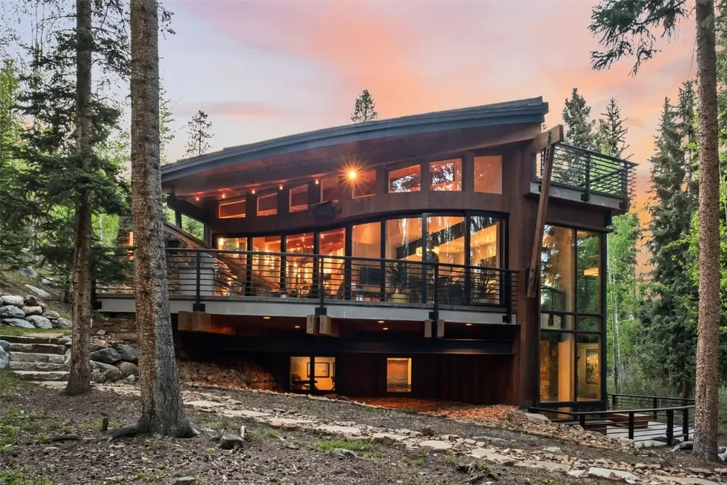 This feature-rich, impressively designed home is a joy to see! The design goal was to bring the feel of the outdoors into the home, mixing the mountain environment with the comfort of the luxury finishes. The owners opted for the privacy of this heavily-wooded, private lot, but impressive views toward Baldy Mtn are possible from the Master suite, kitchen and breakfast areas, as well as the primary office. Every bedroom has a private bathroom, and each bedroom, as well as the primary office, features its own private, heated concrete patio for snow-free winter use. The primary suite features an over-sized shower, heated towel racks, separate tub and windows which extend behind the dual sinks. A cornerstone feature in the kitchen / entertainment area is the custom, 30-foot serpentine sliding glass door, which, when opened, brings the outdoors in, or allows entertainment to flow easily onto the large, heated BBQ deck. There are six concrete deck areas which are heated for snow melt, along with the driveway and entry steps and patio. The lower patio, which is hot tub ready, is located just off the wooded trail providing a flat, easy 6-minute picturesque walk to downtown Breckenridge, the Breckenridge Ski Area and the impressive stop along the Blue River. Worry-free zinc roofing, with solar panels connected to the grid power. Gallery-friendly walls, two climate-controlled wine cellars, air filtration system and smart home features enhance the thoughtful design of this spectacular home. Custom cabinetry throughout the residence, including bedroom closets, theater room, primary office and more. No finish has been overlooked, from the high-end appliances, indoor water feature, Cesar stone countertops, custom rock interior and exterior walls to the exterior wood panels milled from 100 year-old logs sourced from submerged logging bridges from Washington State. You must walk through this spectacular residence to appreciate all of the features which were included in its design!!