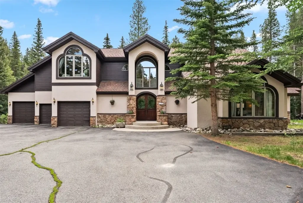 Retreat to a riverfront oasis in this luxurious Breckenridge home. Oversized windows boast views of moving water from all common spaces and primary bedrooms, while soaring ceilings allow sounds of nature to echo throughout. Entertain at a wet bar with underlit onyx countertops, and appreciate kitchen counters of leathered granite, framed by custom cabinetry, stainless steel appliances and an island offering views of the river and additional seating. Marvel in the morning sunlight on the water in an outdoor area complete with hot tub, grill, modern furnishings, and private river island with a secret spot to cold plunge! An upstairs breezeway adds unique flair, connecting two spacious bedrooms. Enjoy an afternoon with a book in the sitting room, flexible to become an additional sleeping space or office. Additional storage is offered through catchall closets and a 980 SF 3-car garage, plus laundry room with sink. This secluded escape feels removed, but isn’t far from the convenience of town, with hiking and biking trails within 5 minutes, world-class skiing just 8-minutes away at Breckenridge Ski Resort, and five 18-hole mountain golf courses within 30 minutes. No transfer tax. Don’t miss this rare chance to own a river sanctuary in the mountains!