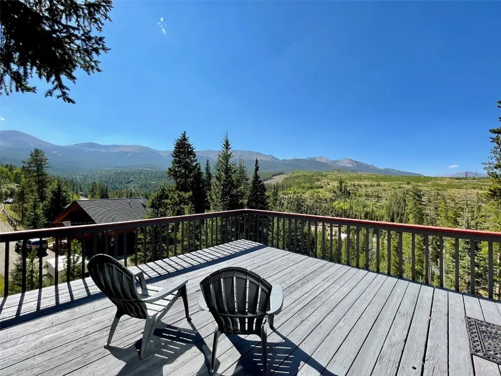 Welcome to your charming mountain retreat in Breckenridge's Peak 7 neighborhood. This adorable 2-bedroom, 2-bathroom cabin offers breathtaking views of Breckenridge and the Ten Mile Range from every angle. Connected to National Forest giving you countless acres to explore just beyond your door. Seller recently purchased this home but inherited another home in Colorado just after closing on this and doesn't want two homes in CO! Interior and exterior painted this summer! Step inside to discover a cozy living space highlighted by vaulted ceilings and hardwood floors, creating a warm and inviting atmosphere. The focal point of the living area is a wood-burning stove, perfect for chilly mountain evenings, enhancing both comfort and charm. The kitchen boasts modern appliances, ideal for preparing meals after a day of adventure. Adjacent, the dining area offers stunning views. The living area opens to a large deck, where you can soak in the panoramic mountain vistas while enjoying meals al fresco or simply relaxing with a morning coffee. Situated on a generous .58 acre lot, this property offers plenty of room for expansion, whether you envision adding a garage, shed, or additional living space. Located just 10 minutes from Main Street and the slopes of Peak 8, this home combines serene mountain living with easy access to Breckenridge's vibrant amenities and world-class skiing. Walk on a hiking trail to the Breck Distilary and easy access to the bike path in Beckenridge that connects you to Frisco, Silverthorne, and beyond! Don't miss the opportunity to own this delightful cabin where every window frames a spectacular mountain panorama. Whether you're seeking a weekend getaway or a year-round residence, this home embodies the best of mountain living in Breckenridge.