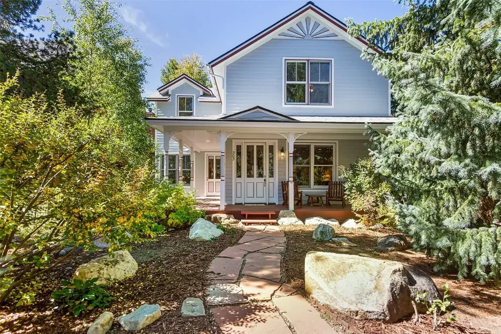 This beautiful modern Victorian home in the heart of town with amazing views, a large yard, comfortable spaces, new custom wide plank pine wood floors, kitchen and bathroom is a must see. Located steps from the dog park and amazing hiking and biking trails. A block to the ski bus or a short walk to the ski area base and 3 blocks to down town for dining, festivals, the performing arts center and the art district. A two car attached garage is a wonderful feature, a mud toom, a private hot tub, an abundance of natural light, a wrap around front porch and a beautiful west facing deck to take in the ski area views and the sunsets. 3 bedrooms, 2.5 baths, 3 fireplaces, immaculately maintained, high ceilings, a wonderful dining area and sitting room. This home has all the charm, location and convenience that you could want in an in town mountain home.