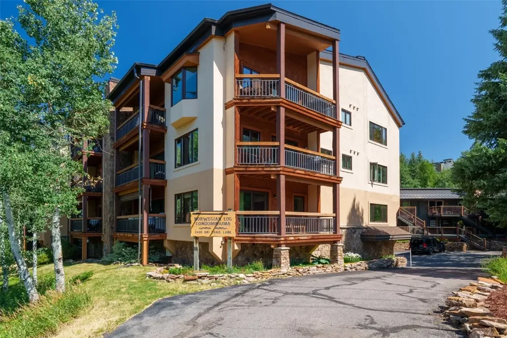 Highly desirable 3 bedroom, 2 bath, 1600+sf corner condominium, in the Green Zone, with ski-out access at Norwegian Log. Incredible on mountain location with a very private and quiet setting for this smaller complex. Easy access with only 1 flight of stairs to the front door. Ideal layout all on one level with two balconies and an open living area great for entertaining. Beautiful kitchen with cherry cabinets, granite flooring and counters and a brand new refrigerator and range/oven. Spacious primary suite with a huge walk-in closet and remodeled bathroom. Large tandem, heated garage with a heated concrete apron and a large storage closet. Extra storage cage in the common hall closet. The exterior of the building was completely redone in 2015 including a new roof, decks, cedar siding, stucco, paint and lights creating a very clean and well cared for environment. New windows and sliders in 2012/13. Large common hot tub to soothe your sore muscles after a day on the slopes or trails. This is a great property, in excellent condition and a truly unique offering just in time for ski season!