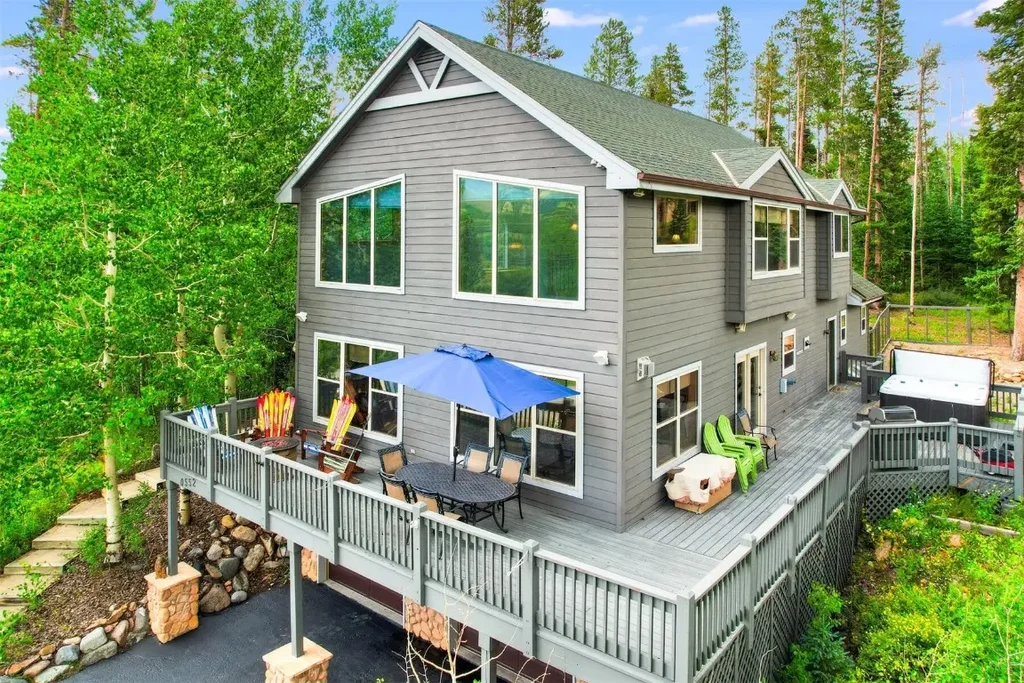 Make your dream of living in Silver Shekel a reality! This 3-bedroom, 2.5-bathroom home in Breckenridge features stunning ski area views and great southwest exposure. The interior boasts vaulted ceilings, creating an open and inviting atmosphere. A large wrap-around deck provides the perfect spot to take in the sunsets, complete with a hot tub for unwinding after a day on the trails. Inside, the home offers a spacious kitchen, a large living area with a fireplace, and expansive windows that capture the views. The bedrooms are all spacious, and the primary suite offers a luxurious bathroom and generous walk-in closet. Large loft area with mountain views is ideal for an office or play area. Bonus room in the lower level could be a second living area, another bedroom or you decide! The huge garage offers plenty of storage for all your mountain gear and large vehicles, while the paved neighborhood roads ensure easy, year-round access.