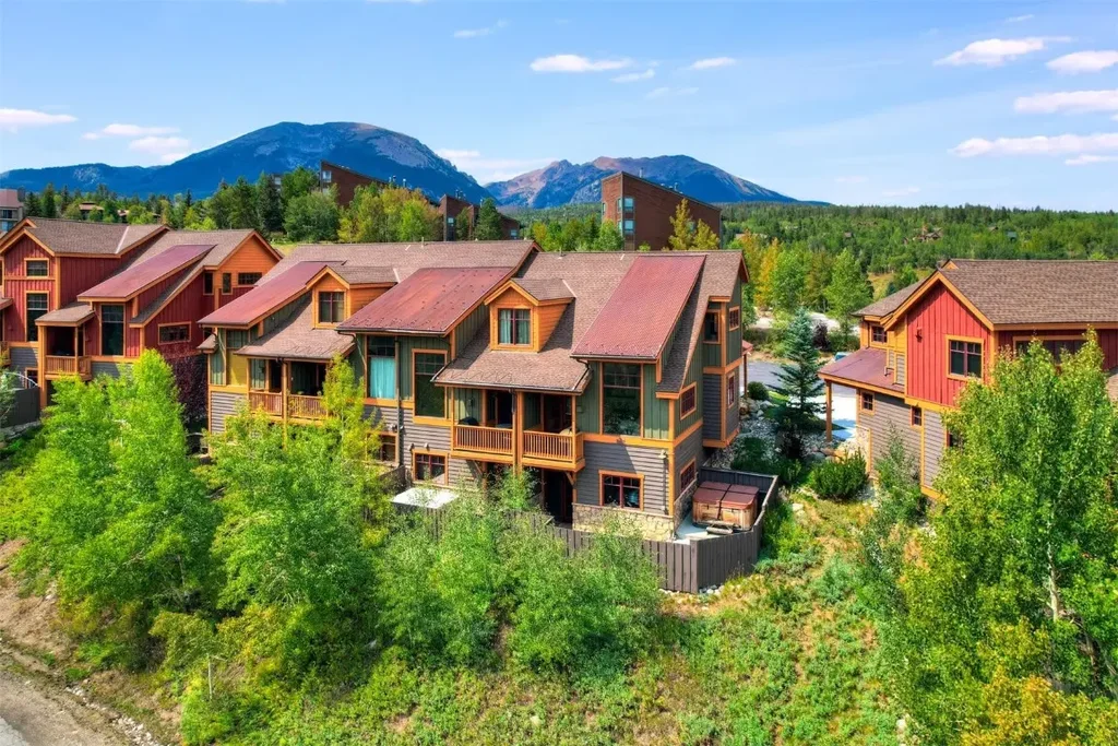 Welcome to Rolling Ridge townhomes! This bright end unit packs a punch with loads of usable space, a convenient location near the bottom of Wildernest, and a very appealing price. Located only one mile to I-70 for easy access to five ski resorts, or take the Summit Stage two stops into downtown Silverthorne for shopping, watersports, riverfront dining, or continue on to Keystone by bus. Some of Summit County’s best hiking and biking trails begin right here in the neighborhood, which is surrounded by national forest with views for days. This is the perfect home base for all of your mountain adventures, complete with a back patio and private hot tub, plus an attached garage. Four large bedrooms allow this home to sleep up to 18 people, and each bedroom includes an ensuite bathroom. Dramatic vaulted ceilings, hardwood flooring, and a gas fireplace with stone surround grace the main level. A granite and stainless cook’s kitchen with a breakfast bar includes all of the amenities needed to host a crowd. Twin primary suites with vaulted ceilings and plenty of privacy comprise the upper level. In the lower level walkout, the oversized fourth bedroom suite could also double as a den or second family room with patio and hot tub access. A convenient laundry room, a main level half bath, in floor radiant heat, and storage galore round out the perks of this fully furnished mountain townhome.