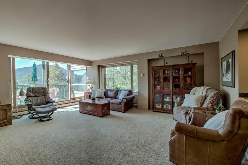 Welcome to this exceptional multi-level end corner unit in Keystone — a rare gem that combines privacy, space, and breathtaking natural beauty. Nestled in a quiet building, this condo features two spacious bedrooms and 2.5 baths, with the living area thoughtfully positioned downstairs and bedrooms upstairs for added tranquility. Step inside and be captivated by the floor-to-ceiling windows that invite the stunning outdoors in, creating a bright and airy atmosphere. The expansive windows not only flood the space with natural light but also enhance the feeling of openness throughout the unit. The large living room is perfect for entertaining or relaxing after a day of adventure. Enjoy the convenience of covered parking and extra storage, as well as the comfort of an in-unit washer and dryer. Unwind in the hot tub at the clubhouse or take a short bus ride to the nearby ski area or Keystone’s River Run for dining and entertainment. The deck offers beautiful views of the surrounding mountains, making it an ideal spot to savor your morning coffee or watch the sunset. With hiking trails right outside your back door and the building backing to a national forest, outdoor enthusiasts will appreciate the immediate access to nature. This condo is a true retreat, blending serene living with easy access to all that Keystone has to offer.