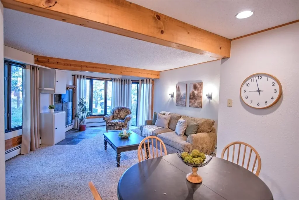 Spruce and Aspen trees beautifully surround this serene location on Peak 8. Just minutes (1/8 of a mile) from the Peak 8 base area and Historic Downtown Breckenridge on the free shuttle route, this condo offers location, comfort, and shared hot tub access and picnic tables. This spacious open floor plan on the garden level has an organic feel with upgraded pine doors and trim. Cozy and comfortable, it’s a smart choice for groups of up to four guests. The living area features extra windows with filtered ski area mountain views, a walk-out patio, and a flat-screen TV for catching the game or the morning snow report. Mostly furnished, it is ready to make this mountain retreat your home. A perfect location for alpine and Nordic skiing, the bus to the ski area and town is only a few steps away. In the warmer months, gather your family and friends and have a fantastic time walking out your door to hike the national forest, Cucumber Patch Preserve, the Lomax Mine, Peaks Trail, the Peak 8 Adventure Park, and more.