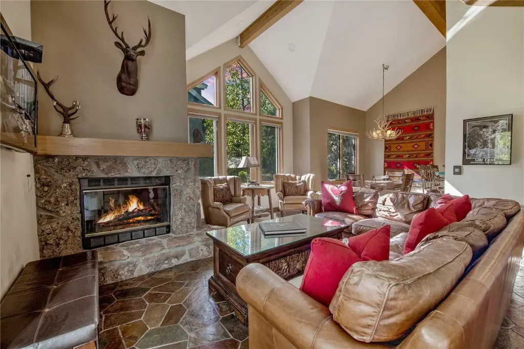 This charming residence is perfectly designed for your ultimate mountain home with an unmatched location and luxury amenities. Located just steps from the Snowflake Lift and a quick 5-minute walk to Main Street, it is an ideal location whether you are skiing or planning to spend the day or evening in Breckenridge. This alpine inspired, end-unit townhome boasts a spacious deck next to open space, complete with a private hot tub and sitting area and is a short stroll away from the Upper Village pool and hot tubs, offering additional relaxation after a day on the slopes. Step inside this architectural gem to be welcomed by soaring ceilings, wood beams, a striking moss-rock fireplace, and expansive windows that flood the space with natural light. Upstairs, the private, primary suite is a true retreat, featuring a spa-like bathroom, a cozy fireplace, a serene loft area, and a private outdoor balcony. On the lower level, two generously sized bedrooms, each with their own en-suite bathroom, provide plenty of room for family and guests to unwind in comfort. The Highlander Townhomes are located in Zone 1 - short-term rental licenses are currently available.