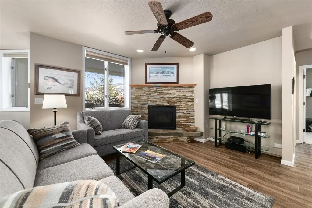 Discover the perfect Steamboat accommodations with everything you need for mountain adventures year-round. Located in the rentable GREEN ZONE and tucked along the banks of Burgess Creek, this fully furnished two-bedroom, two-bath condo has everything you need for comfort and convenience. Highlights include in-unit laundry, a cozy gas fireplace, and an oversized covered patio where you'll enjoy stunning views of the Steamboat Ski area and breathtaking alpenglow on the mountain. The kitchen was remodeled in 2018 and features granite slab counters and stainless steel appliances. The living room furniture and master bed mattress were replaced this summer, and the dining room, guest bedroom, and primary bedroom furniture were updated in 2020. Just a short stroll (10 minutes or less!) from the base area, the Terraces provides a well-rounded experience with amenities like a heated pool, hot tub, ski and bike storage, heated garage with designated parking, elevators, fitness center, an on-call shuttle service around town and to the ski area, along with beautifully maintained grounds featuring walking trails, mature trees, and a year-round creek. HOA dues cover heat, all in-unit gas, internet, cable, and more—making it a hassle-free retreat. After a day on the slopes, the shuttle brings you right back to the Terraces, where you can stash your gear in a heated ski locker, take the elevator up to your condo, and relax by the warm glow of the gas fireplace. Ideally situated just a short walk from the Wild Plum gourmet grocery, liquor store, and a variety of popular restaurants and shops, everything you need is close by for a perfect après-ski experience. Pets are welcome for Owners!!