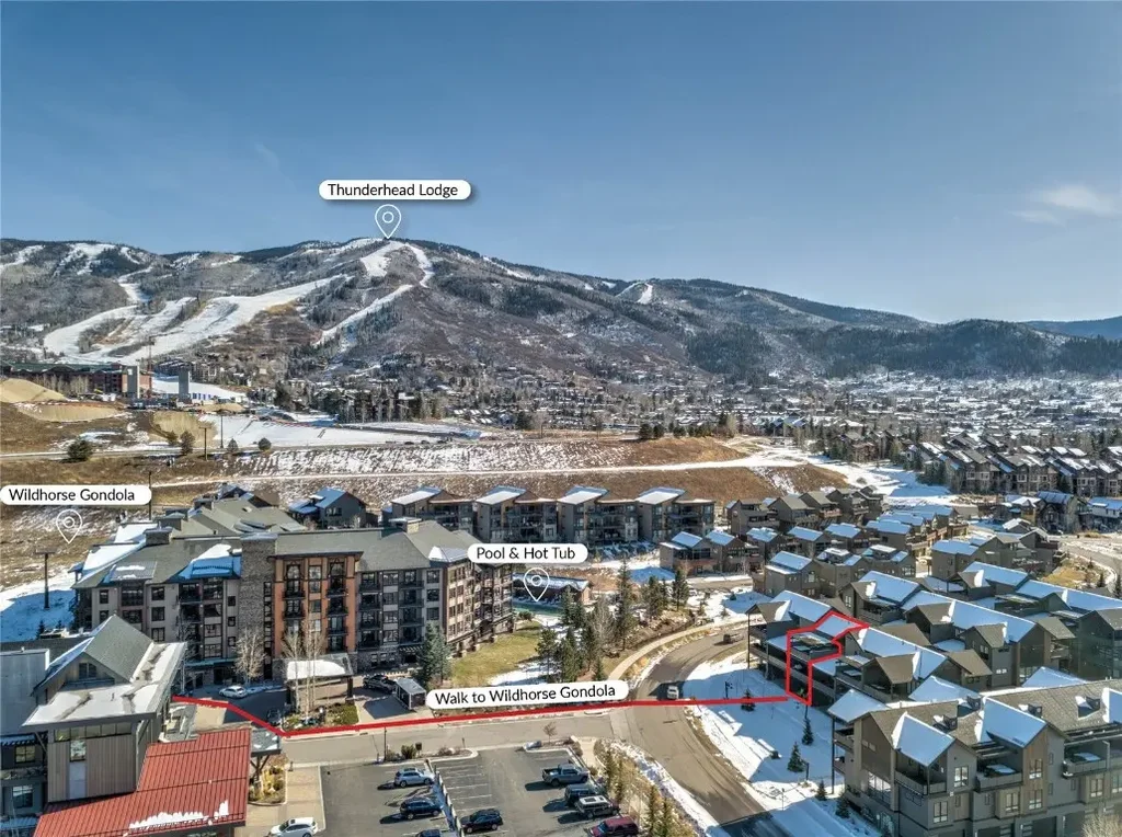 Discover the ultimate Steamboat lifestyle in this stunning 3-bedroom, 3-bathroom townhome at Elevate in Wildhorse Meadows, located just steps from the Wildhorse Gondola. Elevate owners get to enjoy an array of top-tier amenities & this unit is positioned the best within the complex directly across from the refreshing pool, relaxing hot tubs, a fully-equipped fitness center, & a gondola to the ski area. With the tennis center, hiking & biking trails, & a variety of restaurants just moments away, outdoor enthusiasts & those seeking a relaxing getaway will find everything they need within easy reach. Newly built & thoughtfully designed, this home is adorned with high-end Arhaus furnishings, Saatva beds & custom finishes, including an extended quartz kitchen island with seating for seven, built-in closet systems & two spacious exterior decks for indoor/outdoor living. The upper-level primary suite invites you to unwind in a plush king bed with an adjoining hallway to the large exterior deck where you can soak in the mountain vistas from the private hot tub. The two guest bedrooms on the main & lower level of the property accommodate up to seven with a queen bed & a twin-over-queen bunk. Perfect for hosting family or friends, this layout balances luxury with comfortable space for everyone. On the main level you will find an open-concept kitchen/living area that seamlessly blends indoor & outdoor living with a unique, garage-style door off the kitchen that opens to the deck & invites fresh air & sunshine inside with mountain views toward the Wildhorse Gondola. Additional highlights include a fantastic bedroom with en-suite bath on the lower level with an attached 2-car garage, lock-off storage closets & central A/C. With luxurious finishes, an enviable location, very low HOA dues, & excellent rental potential, this mountain modern retreat is a must-see for anyone looking to experience the best of Steamboat Springs. Don't miss this opportunity to make it your own!