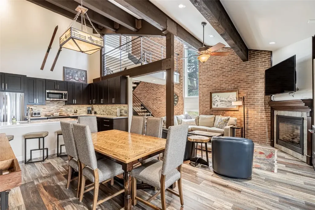This beautifully remodeled Moraine Townhome, located in the highly sought-after short-term rental Green Zone, offers over 2,000 square feet of luxurious living space. Featuring 3 spacious bedrooms, each with its own ensuite bathroom, and stunning panoramic views of the Flat Tops Wilderness and Steamboat Ski Area. As a corner unit, it boasts soaring vaulted ceilings and an abundance of windows, filling the home with natural light and breathtaking views of the surrounding mountains. The top level is home to the private primary suite, complete with a balcony, vaulted ceilings, fireplace, and an ensuite bathroom. The second level offers a junior suite, also with an ensuite bathroom, balcony, and fireplace. The main level is ideal for après-ski entertaining, with a chef’s kitchen, wet bar (including an icemaker and wine fridge), cozy fireplace, and spacious living and dining areas that seamlessly flow on to the large, covered deck. On the lower level, you’ll find a generously sized bedroom with a king bed and bunk beds, an ensuite bathroom, laundry room, bonus sleeping area, and an additional covered patio that showcases stunning views across open space to the Flat Tops. The home’s location next to the open space provides convenient access to the community hot tubs after a day on the slopes or the pool after a day of Steamboat adventures. Additional features include air conditioning, a heated one car garage, large mudroom with custom cabinetry, a double ski locker on the front porch, and a huge storage area on the lower level. The home’s vertical layout ensures privacy and ample space, making it perfect for hosting multiple families or groups. Moraine Townhomes are a rare find, and this fully updated unit is the perfect, turn-key, Rocky Mountain retreat in beautiful Steamboat Springs. Don’t miss out on this incredible opportunity!