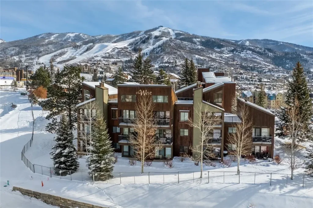 Discover this stunning mountain modern haven at The West. The three-bedroom home has been fully remodeled in mountain modern style and allows the new owner to move-in or begin renting the property right away. The residence is sold fully furnished and turnkey, featuring exquisite designer furnishings that create a harmonious blend of style and comfort. Located in the green zone, nightly rentals are allowed and the coveted location and finish level allow for excellent rental income potential. The elevated setting provides breathtaking panoramic views of Steamboat's South Valley, allowing for an enchanting backdrop throughout the seasons. Enjoy the stellar location that places you within walking distance to the slopes of the renowned Steamboat Ski Resort and the vibrant shops and restaurants of Gondola Square. Inside, the vaulted ceilings allow abundant natural light to flood the space, highlighting the beautiful stacked stone accent wall and creating a warm atmosphere around the cozy fireplace. The well-equipped kitchen features stainless steel appliances and a wine cooler. Three bedrooms each have a private bath, and an in-unit washer and driver add to the convenience. Indulge in a variety of amenities including a heated pool and two hot tubs, perfect for unwinding after a day of exploring the outdoors. A seasonal shuttle allows residents to leave the car at home and ride in style to downtown and other local destinations. With recreational activities such as skiing, biking, and hiking just steps away, this home is an ideal retreat for adventure enthusiasts. A transferable Rollingstone Golf Club membership is available with this property. Buyer to pay $1,100 transfer fee. Experience the perfect blend of luxury and functionality in this spectacular property.