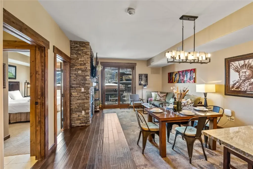 Welcome to Trailhead Lodge, an elegant retreat nestled in the Steamboat Springs coveted “green zone”. This beautifully appointed one-bedroom unit sleeps 4 people and boasts high-end appliances, granite countertops, central air, a gas fireplace, and in-unit laundry. The oversized spa-like bathroom features a large soaking tub with separate shower and luxury dual vanity for your comfort after a nice hike or just coming off the slopes. In the bedroom you will find a king size bed and a desk area if you need to catch up on work after skiing. Immerse yourself in luxury living with the amazing centralized location steps from the Wildhorse gondola, which takes you straight to the base of the ski area, completed with on-call shuttle service and stunning Steamboat views. Trailhead Lodge offers an exceptional opportunity for lucrative nightly rentals while providing abundant amenities for residents and guests. Enjoy walk-to proximity to dining options, the tennis & pickleball center, Strings Music Pavilion, and access to the core trail, which connects you to all that Steamboat Springs has to offer. Revel in updated finishes and furnishings throughout the condo and amenity areas, solidifying Trailhead Lodge's status as one of Steamboat Springs premier luxury resorts. Onsite amenities including a large outdoor heated pool, 3 grotto-style hot tubs, fire pit, men’s and women’s locker rooms, fitness center, game room, BBQ area, owner storage closets, and ski and boot storage area with boot drying rack in the heated underground garage. The front desk and lobby staff offer seasonal apres ski wine and cheese for the owners and guests. Trailhead Lodge promises an unforgettable mountain retreat experience. Whether you seek an investment property with strong rental history or a cherished mountain getaway, this fully furnished turnkey unit offers the perfect blend of luxury and convenience for your needs.