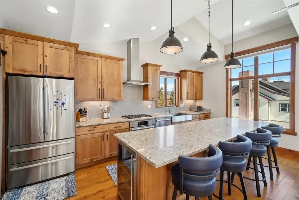 Jackpot! If you are looking for the end of the rainbow, this is it! Perfect combination of location, luxury, space and utility. Towards the north end of main street with "in your face" dramatic close up and distant range mountain views coupled with large windows that wrap around to see them you will find your pot of gold. The rooftop deck is the cherry on the top for the 360 degree vistas. Penthouse feel with a spacious kitchen living dining area that is easy to host the whole gang or retreat all by yourself. This kitchen is well appointed, spacious and has a butler pantry as well! There is even a flex room space near the dining area as well. Separation of bedrooms each with their own private bath is another feature to be appreciated. Not only do you have the main penthouse condo with a ground floor entry and an attached garage, but across the driveway, also included is a stand alone garage with a half bath and the space above is finished! Bonus room to stash the teenagers or use as an office with the shortest commute on the planet! These are just a few ideas of how this space can be used but needless to say, having this space is sure to come in handy and so will 2 garage spaces! Stepping outside without a vehicle is simple as well. Multiple trails to hike, the bike path that can lead you all over the county including Vail Pass, Ten Mile Creek for the water lovers, and of course Main Street Frisco for shopping, dining and festivities on Main with the marina at the end. The bus stops practically out the door so you can ski/board Copper Mountain with no parking hassle! Seriously a fantastic opportunity.