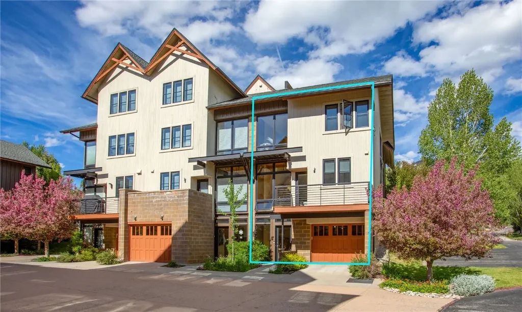 Location, location, location! This coveted Blackhawk Townhome is in the heart of the Mountain Area (allowing for short-term rentals) but feels more like a quiet neighborhood that is sheltered from the base area bustle. It is a premier winter ski spot, situated just a 6-minute walk from the slopes. If Steamboat summers are more your speed, this residence is perfect for long-term stays in the warmer months and highly rentable during ski season while you’re away. This South-facing end unit, basked in sunlight, promises elevated and urban-style living. With 3-bedroom/2.5-bathrooms and a uniquely longer floor plan than its neighbors, this residence offers a 2-car garage, a generous storage closet, and spacious living areas. The warm embrace of wood finishes is juxtaposed with modern steel and industrial accents, creating an inviting atmosphere that feels like home. The updated kitchen boasts high-end appliances, eat-in center island, granite countertops and a chic backsplash. Step outside to one of the three decks, perfect for year-round entertainment with views of the ski area. Convenience is key with a two-car tandem garage providing ample space for vehicles and mountain gear alike. With exterior maintenance, including a heated driveway and parking lot, managed by the HOA, your focus remains on living the mountain dream. Appreciate the best of both worlds with this versatile and homey Steamboat retreat.