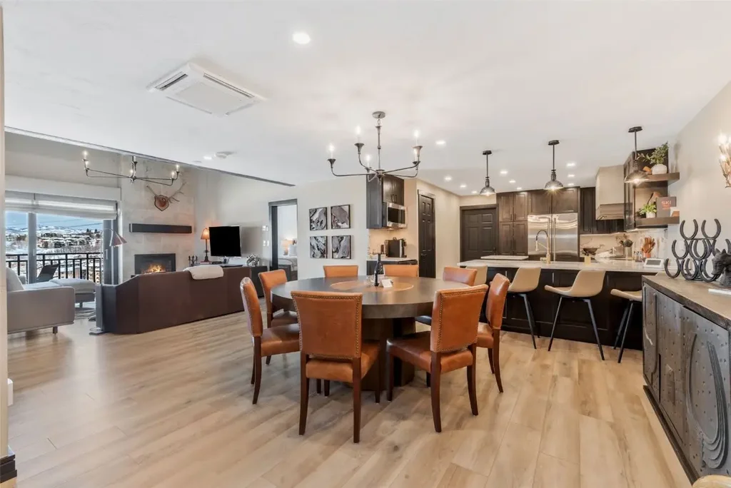 Elevate your vacation with this exceptional, 3 bedroom, 3 bathroom, completely renovated condo with the best ski in/ski out location in all of Steamboat. Ski directly up to the doors of Bear Claw, place your skis in the conveniently located ski racks, put your boots on the heated boot dryers, grab a complimentary hot drink and kick back in the lounge, then take a dip in the stunning outdoor heated pool or whirlpool spa. This top floor condo has a private ski locker for all your gear as well as unparalleled views of skiers and riders skiing the resort from the deck and bedrooms. Upon entering your condo it will become evident you are in one of the most coveted locations that Steamboat has to offer. The interior has been exquisitely redesigned to make you feel right at home with a selection of fine furnishings and accessories, a beautiful stone fireplace, and a dining area fit for gathering. The gourmet, eat-in kitchen is fully stocked with everything you need and features stainless steel appliances, granite counters, and a coffee bar with drink fridge. Both king suites on the main level have their own private ensuite bathrooms, cozy fireplaces and views looking out over the slopes. The upstairs bunk room was designed to maximize sleeping quarters, with a set of custom queen-over-queen built-in bunks, and also has a spacious den and ensuite bathroom. The Bear Claw has amenities like no other property, with five-star concierge services, accommodating front desk, private courtesy shuttle, heated underground parking, onsite massage therapy, private lounge with daily après ski, and an upgraded fitness center. With unrivaled access to the slopes, captivating resort views, and impeccable guest services, at the Bear Claw you can effortlessly enjoy the best of Steamboat.