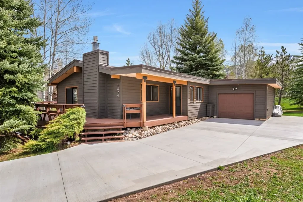 Nestled at the end of a tranquil cul-de-sac in a highly sought-after mountain neighborhood, this exceptional one story home has been completely renovated inside and out. Just minutes from the ski resort, golf course, and downtown, the property offers the perfect blend of convenience, comfort, and luxury. The exterior has been thoughtfully updated with fresh paint, a new concrete driveway, and refurbished decks, while mature landscaping provides natural shade and privacy. Inside, a beautifully reimagined open-concept floor plan welcomes you with vaulted ceilings, new flooring throughout, and freshly painted walls that enhance the airy, modern feel. A formal dining area complements the spacious living room, centered around a charming moss rock fireplace. The fully remodeled kitchen is a chef’s dream, featuring top-of-the-line Thermador appliances, including a 36" gas range, and an efficient layout ideal for both daily living and entertaining. Tucked at the back of the home, the serene primary suite boasts a private deck and a luxurious new ensuite bathroom with a tiled walk-in shower. Two additional bedrooms and a fully renovated second bathroom provide ample space for family or guests. Functionality meets style in the well-appointed mudroom, which offers access to the attached one-car garage complete with built-in storage for all your mountain gear. As a bonus, this incredible property includes a Rolling Stone Ranch Golf Membership, adding even more value and recreational opportunity. This unforgettable mountain home is move-in ready and perfectly positioned for year-round enjoyment in one of the area's most desirable neighborhoods.