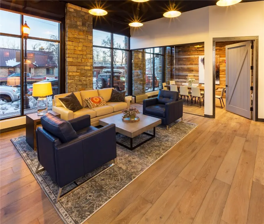 An exceptional opportunity to own a fully remodeled commercial condominium in the vibrant core of downtown Steamboat Springs and only steps away from the Yampa River. This premier unit, completely renovated in 2018, boasts sophisticated, high-end finishes and a modern, versatile layout ideal for a variety of professional uses. Step into a spacious, light-filled open area featuring a comfortable sitting space, room for a large office desk, and a sleek kitchenette — perfect for welcoming clients or maximizing productivity. A glass-enclosed conference room offers privacy without sacrificing natural light and provides generous room for meetings or collaborative work. Remote blinds can be found throughout to ensure privacy in this ground floor unit. Alongside the open layout, the unit includes a private room, an oversized storage closet, and a large bathroom featuring contemporary finishes and a walk-in shower. With direct and convenient access from 5th Street and excellent signage potential, this property offers both visibility and accessibility. The unit offers exceptional flexibility for the next owner, accommodating a wide range of potential uses. Whether you're a professional seeking a private, upscale space or a small business looking to elevate your office or retail presence in one of Colorado’s most dynamic mountain towns, this space is a rare find. Don't miss this unique investment opportunity in the heart of Steamboat.