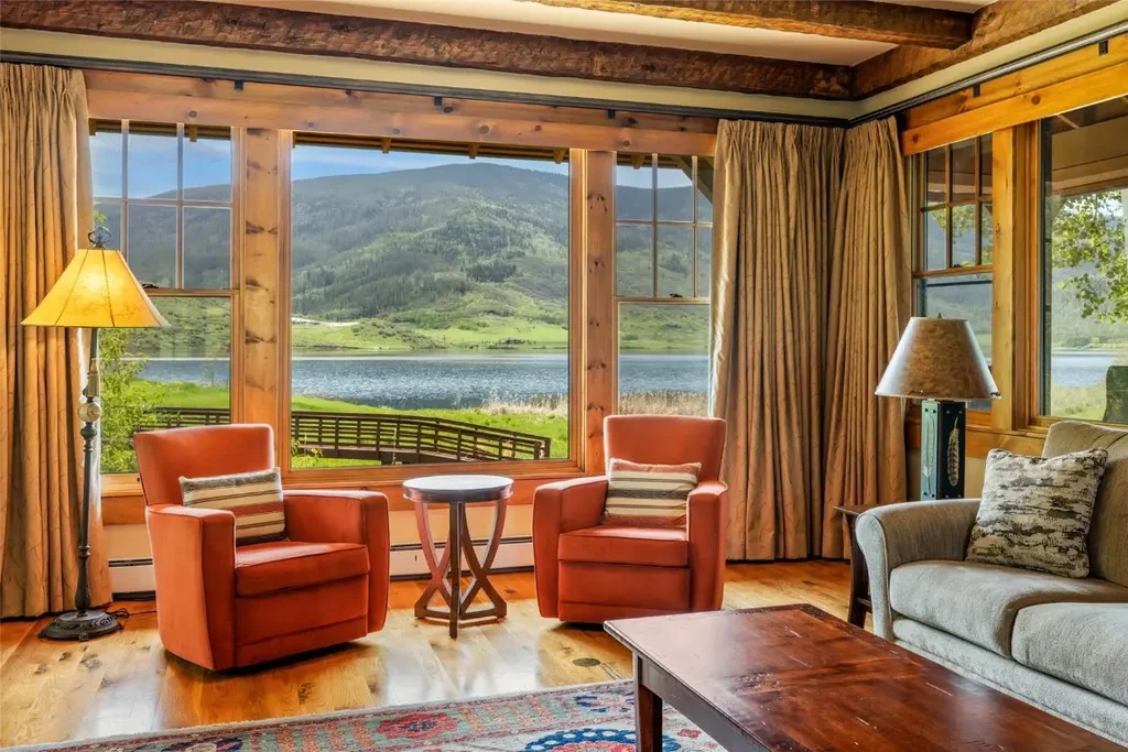 A truly unique opportunity to own a lakefront cabin in the most private section of the Lake Catamount enclave and the only Lakefront Cabin available for purchase. This luxurious property features 3 bedrooms, 3.5 bathrooms, and 2,370 square feet with spectacular views of the lake, bordered by a seasonal stream and open space on one side. The cabin boasts exceptional upgrades, including custom tile work and an upgraded kitchen with gorgeous designer granite. The main level offers breathtaking views of the lake, a welcoming fireplace, and an open floor plan comprised of the kitchen, dining area, and living room. One of the highlights is the outdoor dining area equipped with electric automatic screens that descend to allow for serene lakeside dining. The primary bedroom, located on the main level, includes an ensuite bath with private deck access and the soothing sound of the adjacent stream. The upper level includes two additional spacious bedrooms with panoramic views of the lake and the surrounding South Valley mountains. Additionally, there is an extra den/loft area providing extra entertainment space. Experience unparalleled scenery from your expansive wrap-around deck while enjoying a maintenance-free mountain lifestyle.