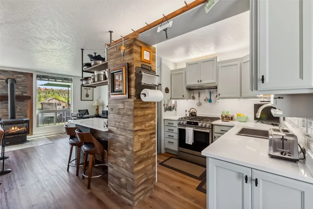 Beautifully remodeled three bedroom unit. Terrace looks over Open Space and Straight Creek, with mountain views to boot. Living floor has newly installed Luxury Vinyl flooring. This home features a real Chef's Kitchen with Stainless Appliances and a Gas Range vented to the exterior. The thoughtfully designed kitchen has a large pantry and a slide out appliance station for your Kitchen Aid or Cuisinart. There is a full laundry in the main level half bath, and custom built storage under the stairs. The upstairs bathrooms have been updated as well with new vanities and flooring. Parking is two cars, unassigned. FINANCING MUST BE NON CONFORMING. Alpine, Luna, Northpoint, First Bank, and King Lending are all great