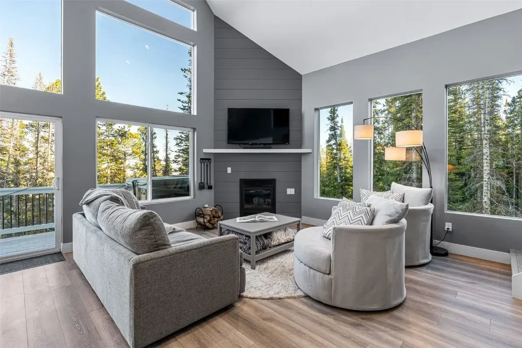 Embrace the perfect blend of contemporary design and alpine tranquility in this stunning mountain home just minutes from downtown Breckenridge. Nestled in a peaceful, forested setting, this retreat offers dramatic views of Mt. Silverheels and the sweeping South Park Valley—framed by soaring ceilings and expansive windows that flood the home with natural light. The open-concept living space is anchored by a cozy wood-burning fireplace, ideal for snowy evenings or relaxed après-ski gatherings. In the kitchen, custom cabinetry, dual pantries, and extra-tall upper cabinets combine elevated style with everyday functionality. Step outside to a wraparound patio, perfect for entertaining or unwinding in the hot tub beneath starlit skies. The spacious primary suite offers a serene escape with ample closet space and a spa-inspired en-suite bath. With an oversized two-car garage and additional storage for all your mountain gear, this home is built for adventure and ease. Whether you're searching for a full-time residence or a luxurious mountain getaway, 408 E El Lobo Lane delivers exceptional comfort, thoughtful design, and breathtaking views—all in a quiet neighborhood with quick access to world-class skiing, hiking, biking, and more.