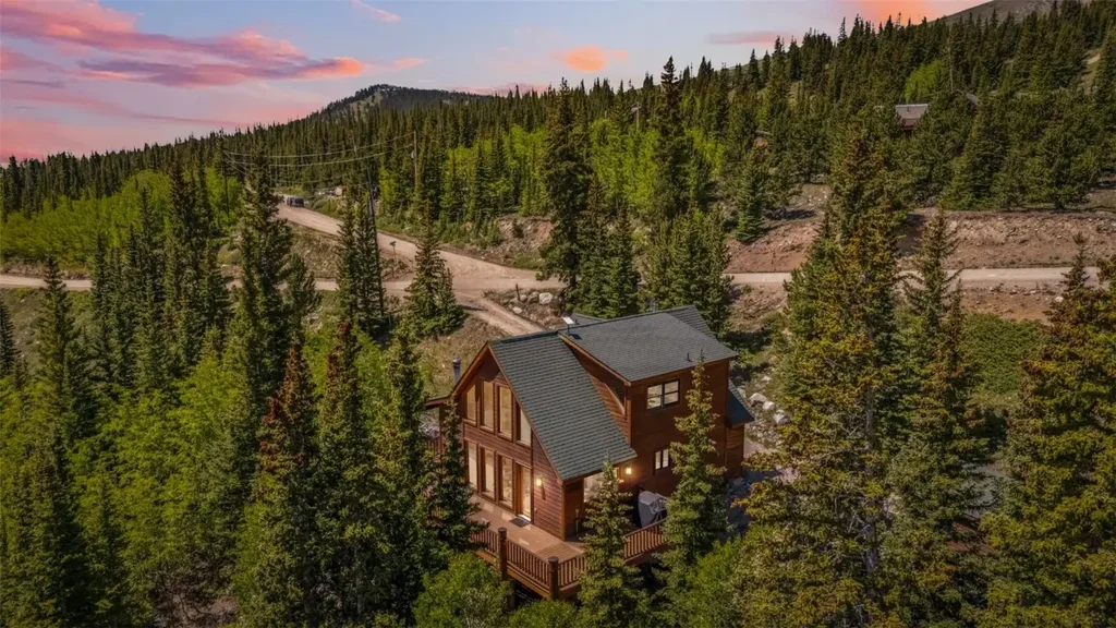 Enjoy Rocky Mountain views of the Continental Divide from this lovely 3-bedroom, 3-bathroom retreat nestled on 2.33 acres of wooded privacy that borders the National Forest. This charming mountain home is designed for comfort and adventure, with panoramic valley views framed by mature pines, aspens and abundant natural light. The main living area features vaulted ceilings, a cozy wood-burning fireplace, and floor-to-ceiling picture windows that bring the outdoors in. Tastefully remodeled kitchen and updated luxury vinyl flooring elevates the decor. Enjoy the convenience of main-floor living with a bedroom and full bath on the entry level. Upstairs there is a private primary suite, complete with an en-suite bathroom and adjacent loft—perfect as a reading nook or home office. The lower level offers a rare bonus: a second family room with walk-out access to a patio, private hot tub, and a sitting area ideal for a firepit. The detached gear shed provides ample space for all your outdoor equipment. Located just minutes from Breckenridge & world-class skiing, as well as backcountry trails for hiking, biking, ATVing, and more, this property offers the ideal blend of seclusion and access. Whether you're seeking a peaceful getaway or a full-time mountain lifestyle, this exceptional home delivers it all.