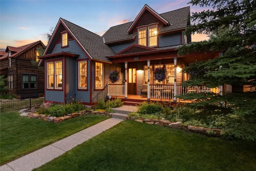 With breathtaking vistas of the Breckenridge Ski Resort and its surrounding peaks, the distinctive ‘Harris Haus’ is ready to be your alpine retreat. Located in-town in Breckenridge’s beloved historic district, this elegant home seamlessly blends Victorian charm with modern luxury. The thoughtfully designed layout highlights magnificent mountain views, and balances open-concept living areas with more intimate spaces. Western accents including exposed timber beams, local granite fireplaces, custom woodwork, and a tinplate ceiling evoke Breckenridge’s frontier town heritage, while a dine-in chef’s kitchen and two main floor living spaces bring contemporary convenience. Two sumputous bedroom suites, both located on their own floor, offer great privacy. A well-appointment guest bedroom and large bunk room, each with their own full bath, provides plenty of space for hosting family and friends. A historic mining cabin on the property has been reimagined as a studio ADU, with a kitchenette and full bath making for a charming in-law suite or third living room. Private outdoor spaces with big views are hard to find in-town, and the home’s wraparound front porch, landscaped yard, expansive patio, and heated driveway add incredible value. Immaculately maintained with a fantastic location, this spectacular property captures the essence of ski town living. Situated only three blocks from Main Street, the gondola, dining, and shopping are just steps from your front door. Enjoy world-class outdoor recreation year-round with direct access to Breckenridge’s ski slopes, hiking trails, bike paths, gold-medal fly-fishing waters, and more. Set up a private viewing today, and discover all this exquisite mountain home has to offer.