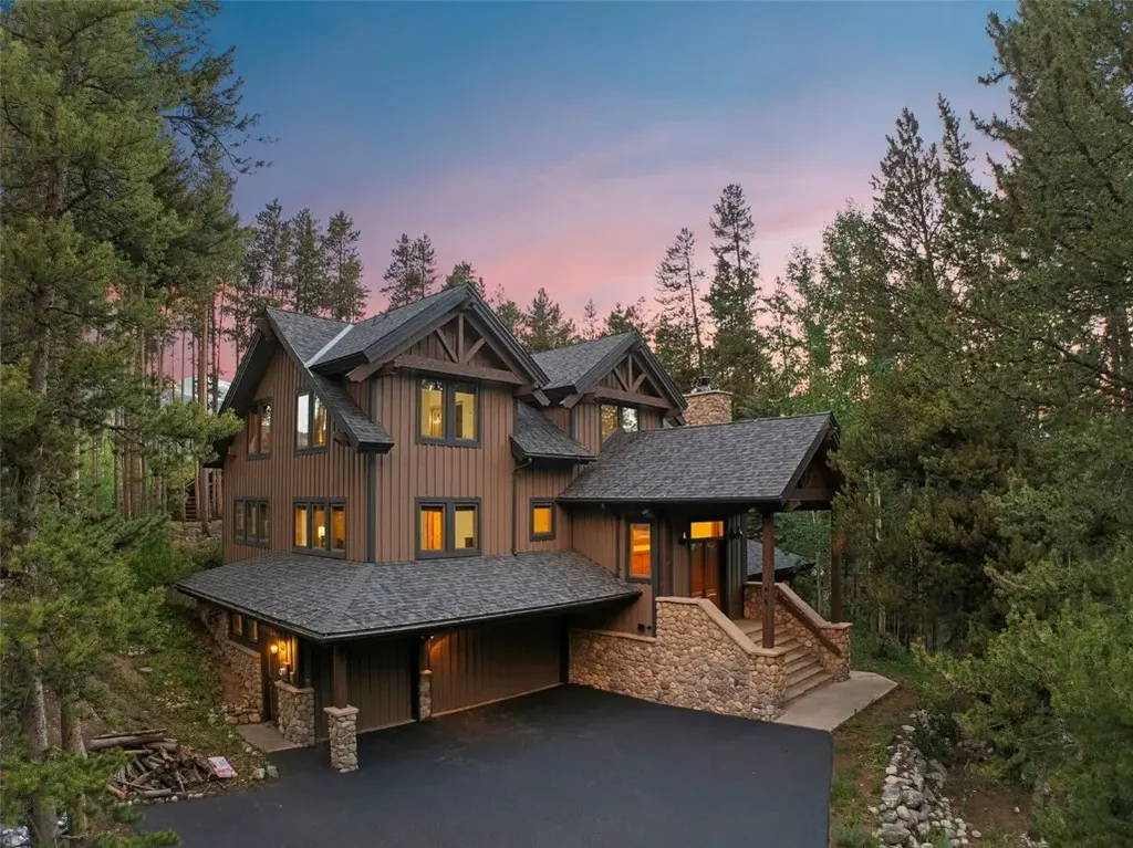Tranquil Mountain Retreat in the Heart of Breckenridge with walk to Main St location. Set on nearly half an acre in-town, this serene Breckenridge home blends rustic charm with modern comfort, surrounded by towering trees and bordering a neighborhood trail that leads to endless miles of hiking and biking. Just a short stroll to Carter Park where you'll find pickleball and tennis courts, a playground, dog park, and sledding hill in winter—this location truly captures the spirit of mountain living. Inside, cozy up by the wood-burning fireplace or one of two gas fireplaces as you enjoy filtered views of the ski runs. The spacious main level showcases wood floors, vaulted ceilings, and an open flow perfect for entertaining. A large loft provides flexible space for a home office, reading nook, or creative corner. Step onto the balcony off the expansive primary suite to enjoy the mountain air and views of the Breckenridge ski area. The primary suite is complete with a five-piece spa-like bath, generous walk-in closet, and its own fireplace creating a luxurious sanctuary. Enjoy quiet evenings in the hot tub on the deck or gather in the family room with the convenience of a secondary kitchen. A 3-car garage provides ample storage for gear and vehicles, while recent upgrades including a brand-new roof and fresh interior and exterior paint make this mountain haven, move-in ready. Mountain luxury meets walkable convenience.