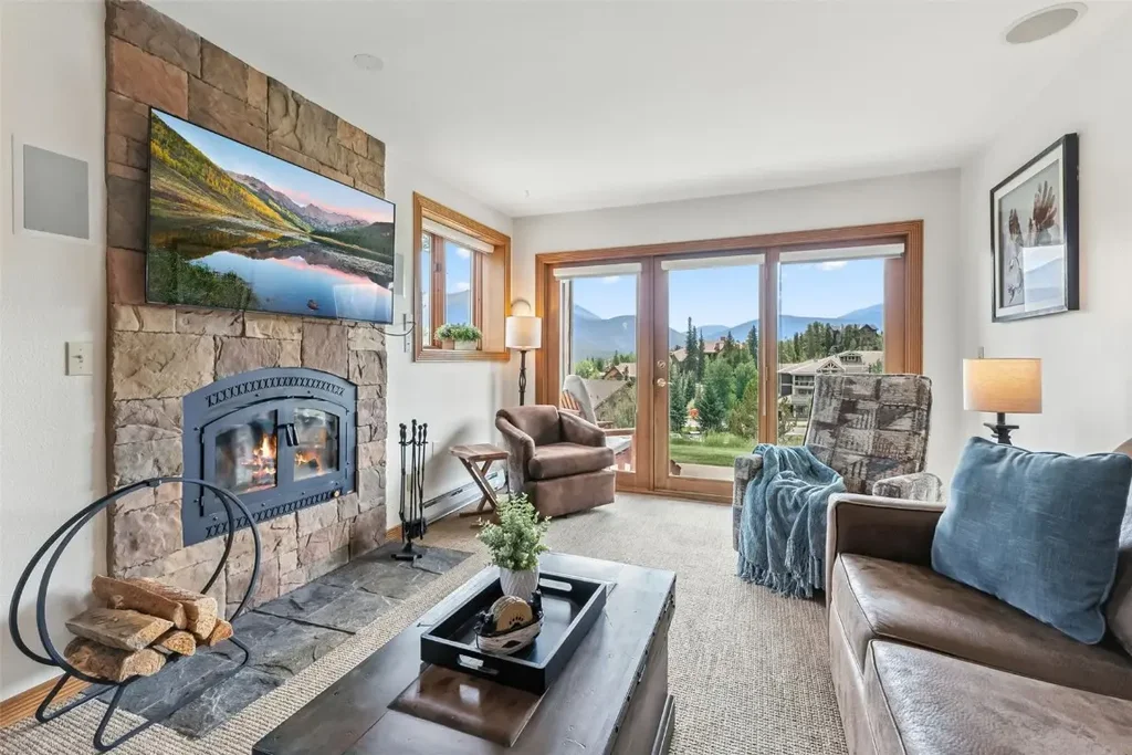 Experience the best of Breckenridge in this beautifully appointed 1-bedroom condo, ideally situated just steps from the Four O’Clock Ski Run in coveted Zone 1. Offering true ski-in, ski-out access, this mountain escape blends outdoor adventure with in-town convenience. Step inside and be greeted by a bright, inviting living space with floor-to-ceiling windows that frame sweeping views of Mount Baldy. A wood-burning fireplace anchors the room, creating a warm, cozy setting after a day on the slopes. The spacious bedroom accommodates a king-size bed and offers stunning mountain views. The kitchen features granite countertops, updated cabinetry, and a full suite of appliances, including a washer/dryer. Step outside to the ground-floor patio for a morning cup of coffee or just take in the mountain views. Residents enjoy access to the clubhouse hot tubs and year-round trail systems right outside the door. This upgraded residence has built-in audio surround sound and new baseboard heaters. Whether you are looking for a mountain getaway or a strong vacation rental in one of Breckenridge's most sought-after locations, this ski-side gem offers it all.