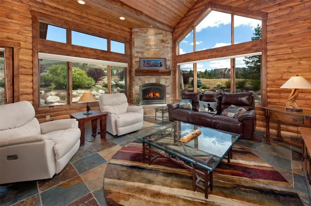Quality-built home with warm rustic log accents and top-end finishes in quiet private location nestled between Keystone's River Course and the Snake River. Like-new condition. Bike/walking path along the Snake River a short stroll away. No stairs to access open concept main living level and primary bedroom. Primary bedroom features a jetted tub, large walk-in closet, and private patio. Large main-level laundry. Walk-out from living room to spacious outdoor patio with gas firepit extends the enjoyment of one-level living. Slate flooring in great room/kitchen/dining room. Kitchen features slab granite counters, upscale stainless appliances, knotty alder cabinets, and more. The carpeted upper-level features a family room with pool/ping pong table, three additional bedrooms each with private bath, and an office/fifth bedroom. Very nicely furnished. Over-sized two-car garage with ample storage for bikes and gear. Irrigation system for landscaping. Easy access to ski slopes and all of Summit County. No rental restrictions.