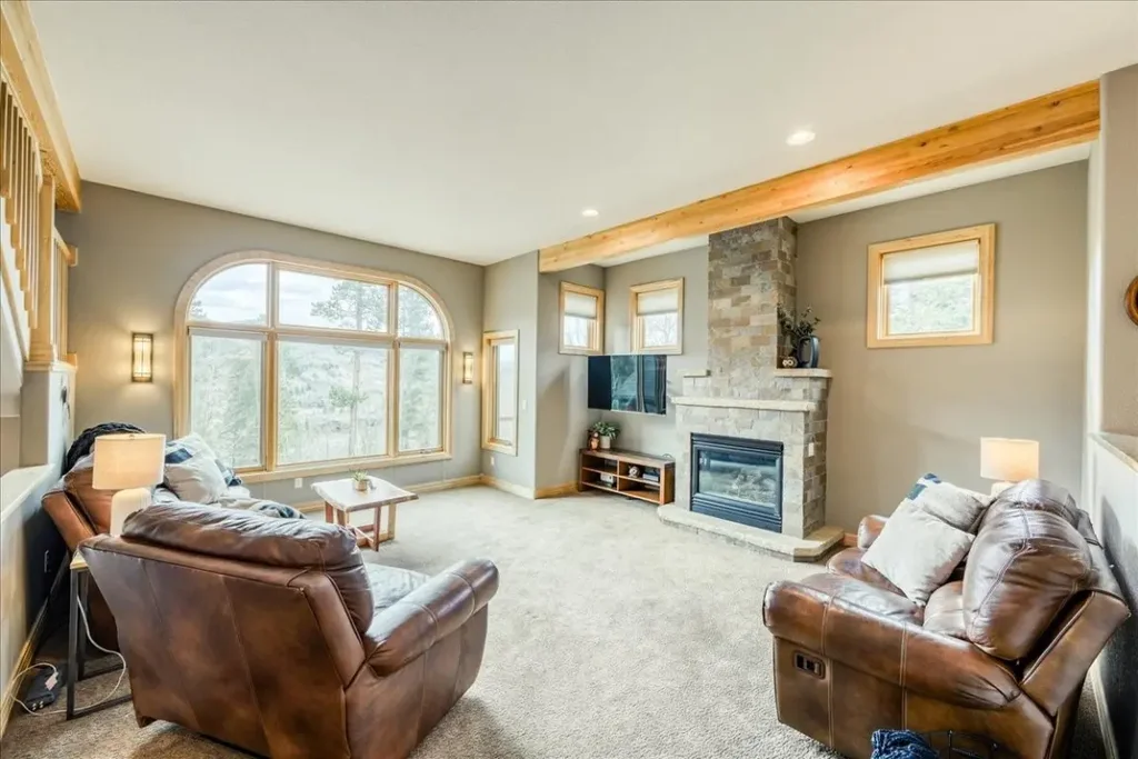 Perched on a serene, private street within the prestigious Raven at Three Peaks golf course community, this well maintained duplex offers a rare blend of luxury, tranquility, and convenience. With sweeping southern views of Keystone and the surrounding peaks, this residence captures the essence of Colorado living. Step inside to a thoughtfully designed open floor plan, where expansive windows flood the space with natural light and frame breathtaking vistas. Each generously sized bedroom is paired with its own private bathroom, offering a refined level of comfort and privacy. In-floor radiant heat ensures warmth throughout the seasons, while the oversized two-car garage provides ample room for vehicles and gear. Enjoy your morning coffee or evening wine on the sun-soaked south-facing deck, where wildlife sightings—fox, deer, even moose—are a regular delight. At night, the stargazing is unmatched. With low annual HOA dues, proximity to world-class ski resorts, and easy access to Dillon, Frisco, and Breckenridge, this home is both a luxurious retreat and a gateway to year-round adventure. Surrounded by golden aspens and friendly full-time neighbors, this is a sanctuary where mountain elegance meets everyday ease.