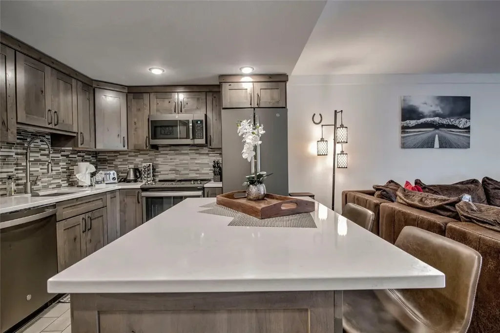 Beautifully updated and move-in ready, this furnished first-floor unit is accessible via ramp in the desirable D building. This 2-bedroom/2-bath features LTV flooring throughout, and the kitchen and baths have been tastefully updated with Alder cabinets, quartz countertops, and high-end appliances. Enjoy mountain views from this residence and the clubhouse, which offers resort-style amenities including an indoor pool and spa, hot tubs, racquetball and tennis courts. The property backs to the National Forest and bike path, and is just minutes from the marina and Main Street’s shops and restaurants. Landscaped and nicely treed setting with both covered and outdoor parking. Excellent opportunity for a primary, second home or rental investment.