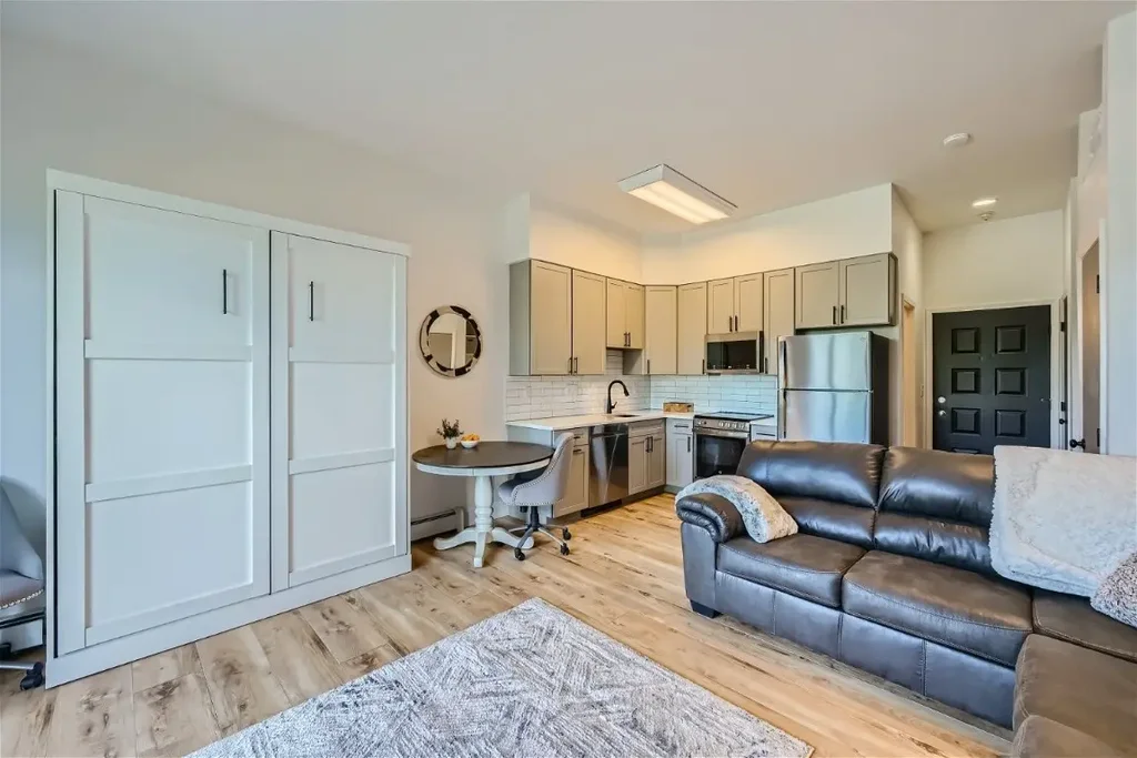 Seller has recently finished a gorgeous and complete re-model of this awesome studio at the top of Wildernest with hiking, biking and cross country skiing right out your back door. Absolutely ideal for dog lovers with a walk-out patio on the ground level leading directly to a big grassy area and super convenient access to your vehicles. The property “Lives Large” with 10 foot ceilings and attention to storage everywhere, including thoughtful touches like the built-in trash and recycling pullout cabinet, custom dressing area with huge drawers, quartz countertops and 2 great closets providing a place for everything! The beautiful new queen murphy bed easily tucks away during the day to offer wide open enjoyment of your living area. Unit feels incredibly private since there’s virtually no noise transfer through walls or ceiling. With the exterior remodel just finished and other amenity re-builds underway (pools, hot tubs, sauna, game room, racquet ball court, workout room etc), this is the time to own the mountain lifestyle. Tenant occupied, some notice to show is required. Tenant occupied, some notice to show is required......