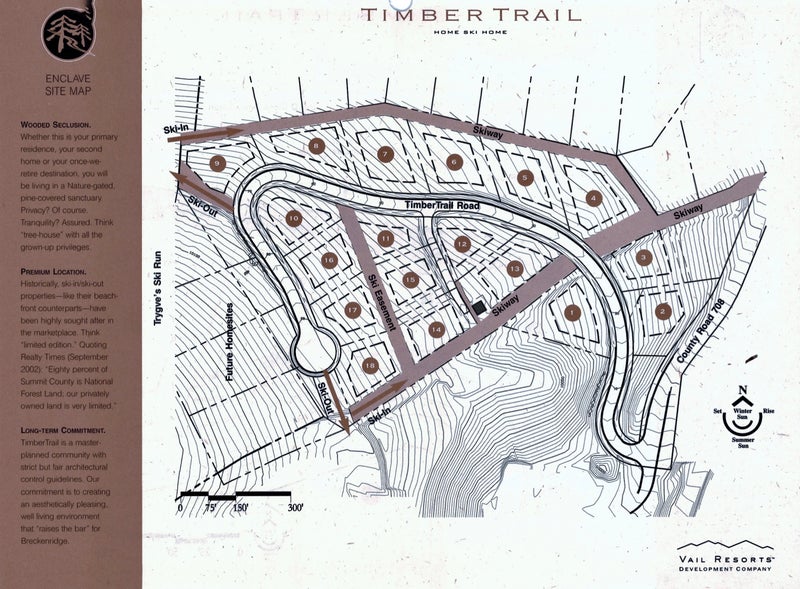 Timber Trail in beautiful Breckenridge, Colorado.  Be a part of a premier ski in, ski out subdivision in Breckenridge!  Ski out your back door and cut over to Trygve's Ski Run for ski access.  Incredible location at Peak Eight.  Timber Trail is comprised of 18 ski-in/ski-out homesites nestled on Breckenridge Mountain's Peak Eight. All Timber Trail homesites are situated in the evergreen trees, some with views of the Ten Mile Range and Peaks Seven and Eight on the north side. The south side may enjoy vistas of Baldy Mountain.  All 18 parcels quickly sold upon their release.